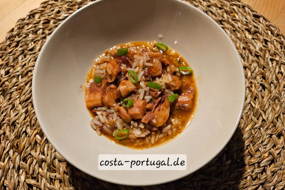 Arrozada de Tentáculos, auch bekannt als Reis mit Tintenfischtentakeln, ist ein schmackhaftes und beliebtes Gericht in Portugal, das ähnlich wie ein Risotto zubereitet wird. Es nutzt die reichen Aromen des Tintenfisches und kombiniert sie mit der Beigabe von Reis und Gewürzen, um ein köstliches und sättigendes Gericht zu schaffen.